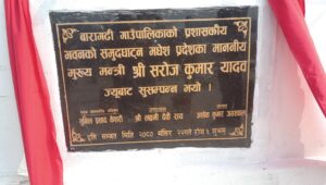 मुख्यमंत्री यादवद्वारा बारागढीमा प्रशासकीय भवनको उद्घाटन कार्य बिधिवत रूपमा सम्पन्न भएको छ । बारा जिल्लाको स्थानीय तहहरू मध्ये बारागढि गाउँपालिकाको वडा नम्बर ३ खाेपवा स्थित गाउँ कार्यपालिकाको कार्यालय भवनको प्रमुख अतिथि मधेश प्रदेश सरकारका मुख्य मन्त्री माननीय सराेज कुमार यादवकाे प्रमुख अतिथ्यता र बारागढी गाउँपालिका अध्यक्ष असाेक कुमार जयसवालकाे अध्यक्षतामा साे उद्घाटन कार्य सम्पन्न भएको हो ।