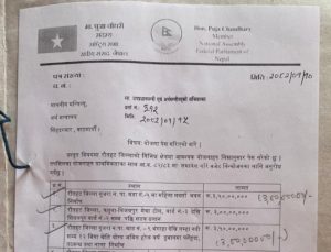 यता रौतहट क्षेत्र नं. ३ निवासी जनता समाजवादी पार्टी नेपालकी संघीय सांसद राष्ट्रीय सभा सदस्य माननीय पूजा चौधरीको लेटर पैडबाट उक्त योजना माग गरिएको बताइएको छ। अर्थ मन्त्रालय सिंहदरवार काठमाण्डौलाई सम्बोधन गर्दै २०८२ साल बैशाख १५ गतेमा ३१२ नम्बरमा दर्ता समेत भई विभिन्न योजनाहरूमध्ये दुई वटा गुजरा नपा र एउटा उक्त फतुवा बिजयपुर नपामा रहेको योजना छनौटमा पर्न सफल भएको एक जना जसपा नेपालका नेताले बताएका छन।