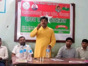 जनता समाजवादी पार्टी नेपालको बर्गीय संगठन समाजवादी युवा संघ रौतहटको नव गठित जिल्ला कार्य समितिका पदाधिकारी सदस्यहरुको शपथ ग्रहण कार्यक्रम सम्पन्न भएको छ । शनिवार गौर स्थित बार एसोशियसनको सभाहालमा समाजवादी युवा संघका जिल्ला अध्यक्ष पुन प्रताप पटेलको अध्यक्षतामा भएको सपथ ग्रहण कार्यक्रम सम्पन्न भएको हो ।