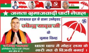 जसपा अध्यक्ष यादवलाई विजयी बनाउन अपील गर्दै नेता नेपालले भने, ‘सिंगो देश र संसदलाई उपेन्द्र यादवको खाँचो छ, त्यसैले राष्ट्रले खोजेको नेता उपेन्द्र यादवलाई अत्याधिक मत दिएर विजयी गराउन नेकपा एसको पार्टी पंक्ति एवं सिंगो बाराबासीलाई आग्रह गर्दछु ।’