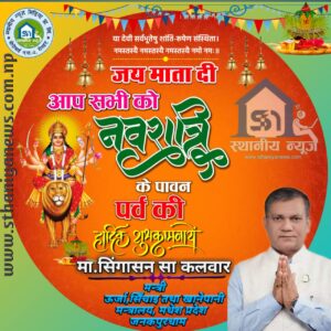 बडादशैको शुभकामना Posted by: RN Patel in अन्य ५ कार्तिक २०८०, आईतवार १५:३६ 0 61 Views हिन्दूहरुको महान पर्व बडादशैं,शुभ दिपावली तथा छठ पर्वको शुभ उपलक्ष्यमा स्वदेश तथा विदेशमा रहनुभएका सम्पूर्ण नेपाली दाजुभाई तथा दिदीबहिनीहरुमा सुख शान्ति समृद्धि सु-स्वास्थ्य एवं दिर्घायु तथा उत्तरोत्तर प्रगतीको हार्दिक मंगलमय शुभकामना। ५ कार्तिक २०८०, आईतवार १५:३६ RN Patel