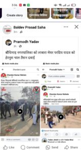 बौधिमाईका शिक्षाविद्व साह द्वारा सामाजिक सञ्जालमा भ्रामक पोस्ट शेयर गरिएको छ। नगरपालिकाको नगर शिक्षा समितिको शिक्षाविद् पदमा नियुक्त रहेका नगर शिक्षाविद् बालदेव प्रसाद साहले सामाजिक सञ्जाल फेसबुकमा एक जनाले मेयर लखेटदै को विडियो अपलोड गरेकोमा शिक्षाविद् साहले उक्त विडियोलाई शेयर गरेका हुन ।