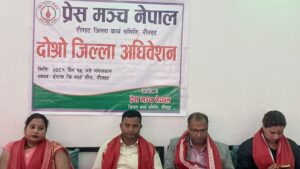 प्रेस मंच नेपाल रौतहटको दोस्रो जिल्ला अधिवेशन कार्यक्रमका विशिष्ट अतिथि जनता समाजवादी पार्टी नेपाल केन्द्रिय सदस्य पूर्व राज्यमन्त्री योगेन्द्र राय यादव,केन्द्रीय सदस्य एवं मधेश प्रदेश सदस्य माननीय शोभा देवी साह, प्रेस मञ्च नेपालको केन्द्रीय सदस्य एवं नेपाल पत्रकार महासंघ रौतहट संस्थापक पत्रकार रबिन्द्र प्रसाद साह, प्रेस मंच नेपाल मधेस प्रदेश समिती महासचिव बंन्दना झा, महोत्तरी जिल्ला सदस्य शैलेन्द्र यादव लगाएतको उपस्थिती रहेको थियो ।