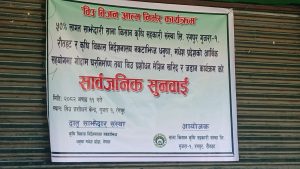 गुजरा नपा-१ मा बिउ विजन आत्मनिर्भर कार्यक्रम अन्तर्गत सार्वजनिक सुनुवाई कार्यक्रम सम्पन्न भएको छ।जिल्लाकाे गुजरा नगरपालिका-१ रंगपुरस्थित साना किसान कृषि सहकारी संस्था लि.ले विउ विजन आत्मनिर्भर कार्यक्रम अन्तर्गत गोदाम घर निर्माण तथा विउ प्रशोधन मेशिन खरिद र जडानसम्बन्धी सार्वजनिक सुनुवाई कार्यक्रम सम्पन्न गरेको छ ।