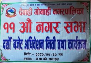 रौतहटको देवाही गोनाही नगरपालिकाको ११औँ नगरसभा तथा १०औँ बजेट अधिवेशन उत्साहपूर्ण वातावरणमा सम्पन्न भएको छ। नगरपालिकाको सभाहलमा आयोजित अधिवेशन नगर प्रमुख प्रेमलाल साहको अध्यक्षतामा सम्पन्न भएको हो।