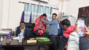 सोमबार नगरपालिका कार्यालयमा आयोजित कार्यक्रममा नगरप्रमुख विनोद प्रसाद कुर्मीको नेतृत्वमा वडाध्यक्षहरू तथा नगरपालिकाका कर्मचारीहरूले नवनियुक्त प्रमुख प्रशासकीय अधिकृत प्रसादलाई स्वागत गरेका हुन।
